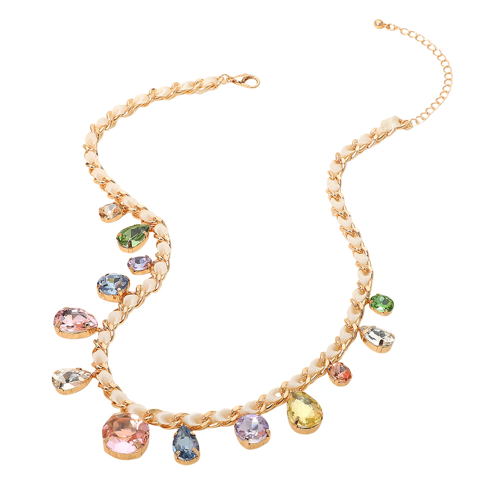 Round Teardrop Stone Cluster Station Bow Braided Chain Necklace Round Teardrop Stone Cluster Station Bow Braided Chain Necklace Round Teardrop Stone Cluster Station Bow Braided Chain Necklace