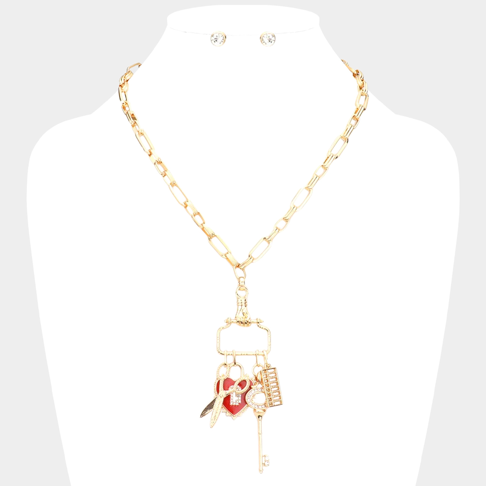 12PCS - Bow Heart Stone Pendant Jewelry Set