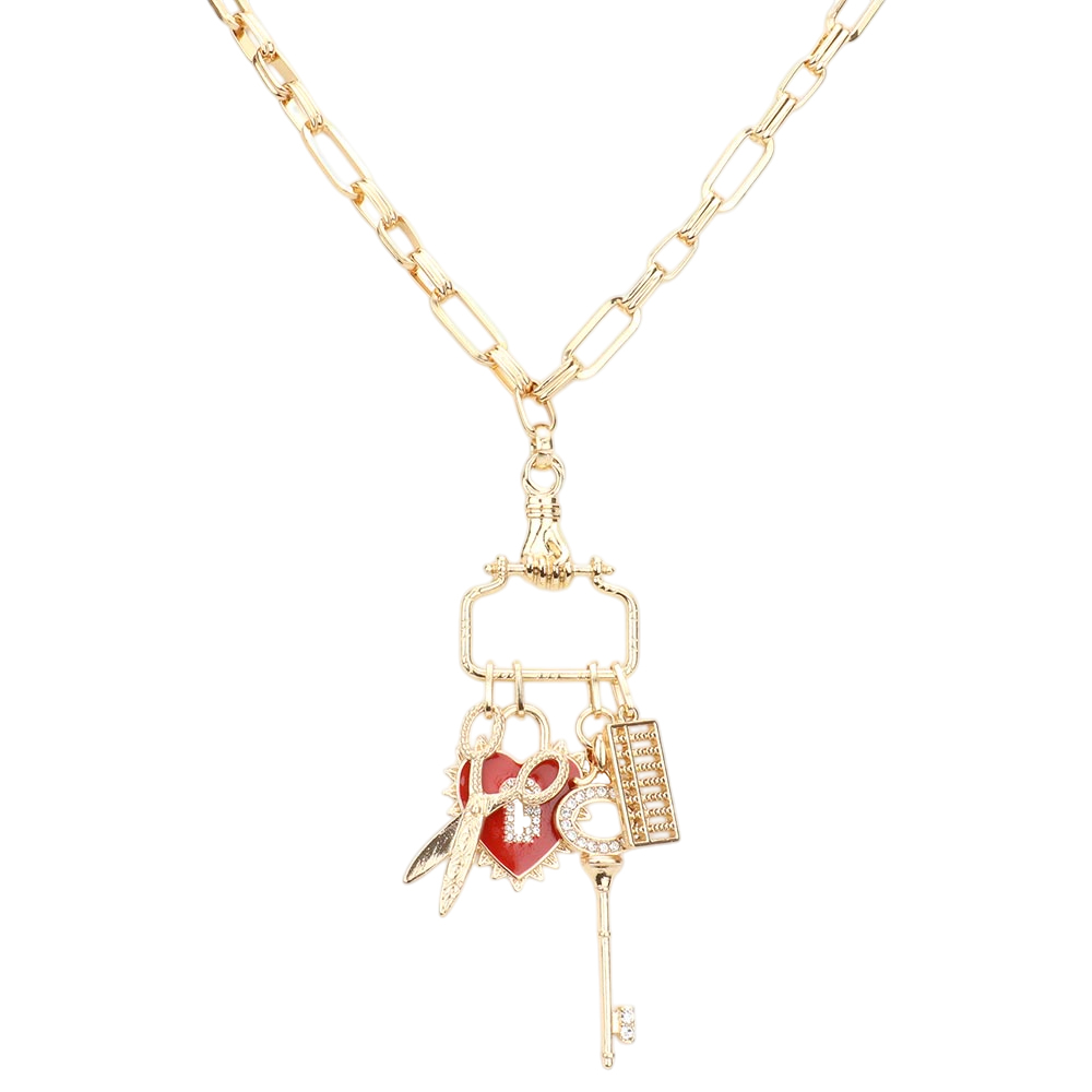 CZ Heart Stone Cluster Accent Rhinestone Paved Necklace