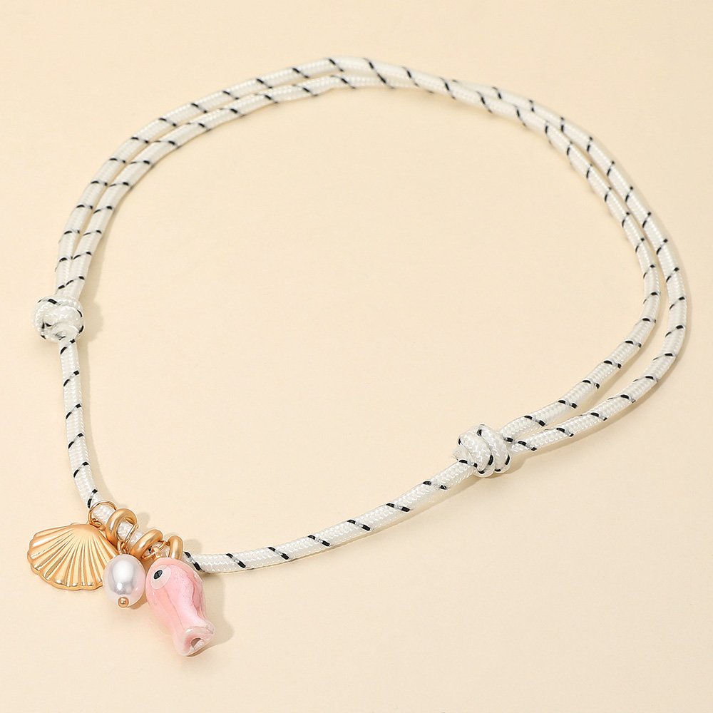 Sea Shell Fish Pearl Pendant Adjustable Rope Necklace Sea Shell Fish Pearl Pendant Adjustable Rope Necklace