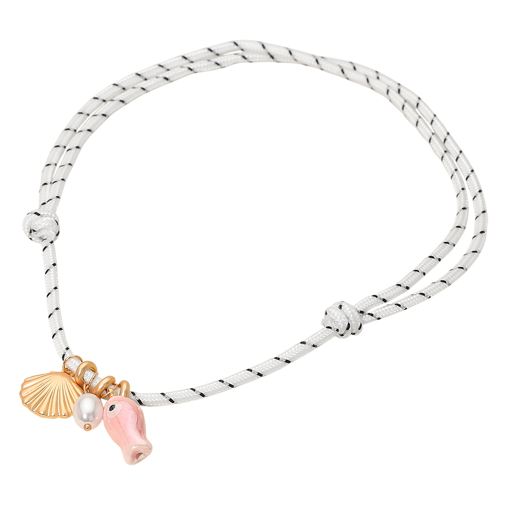 Sea Shell Fish Pearl Charm Rope Bracelet