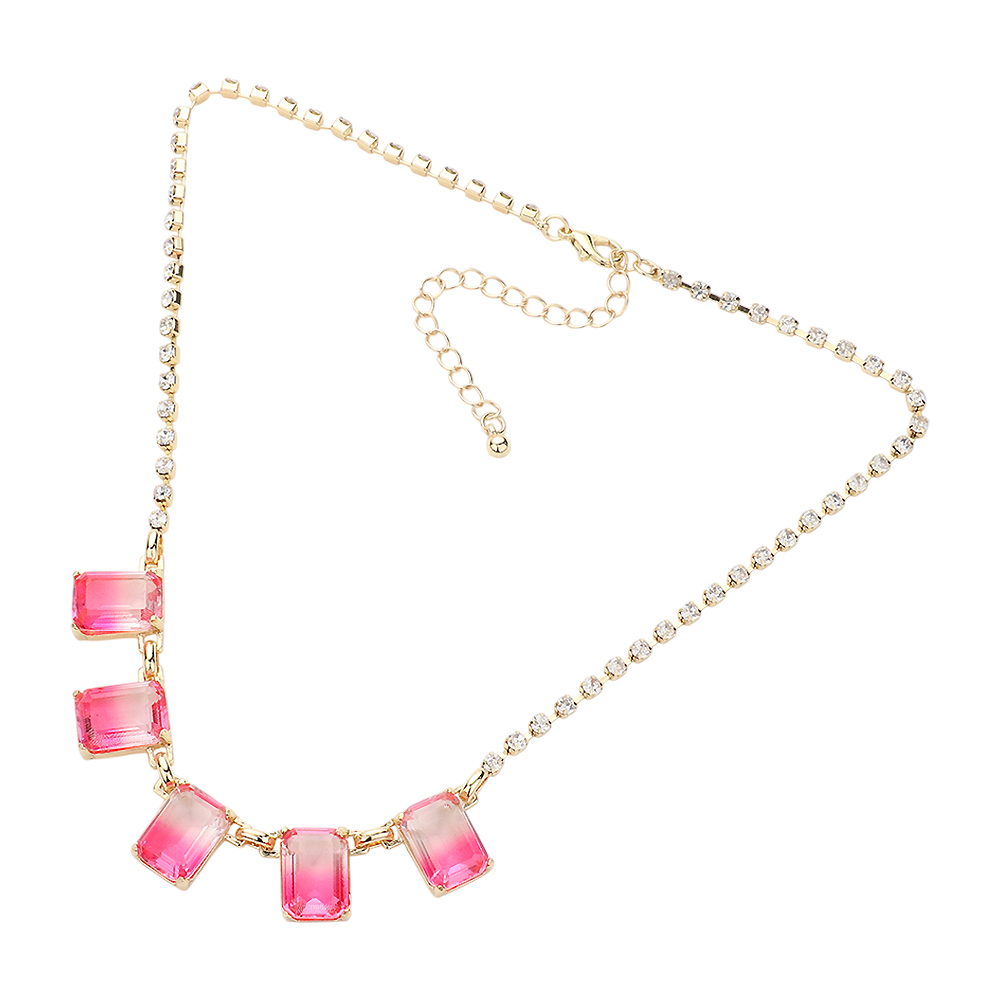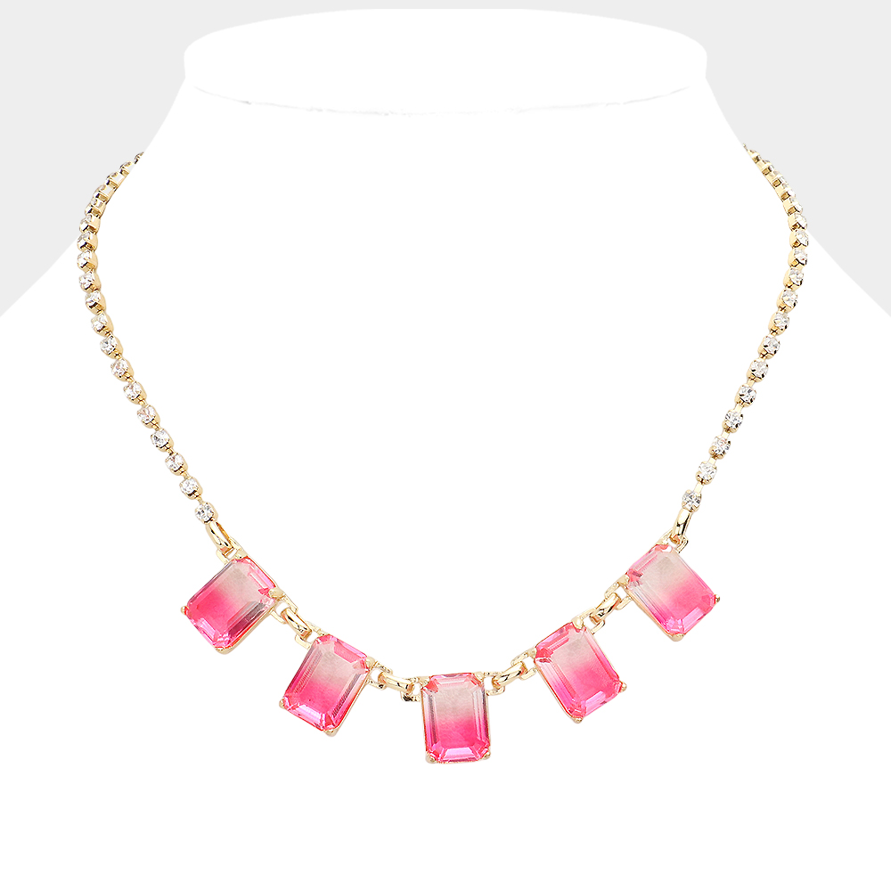 Secret Box _ Ombre Emerald Cut Stone Link Necklace