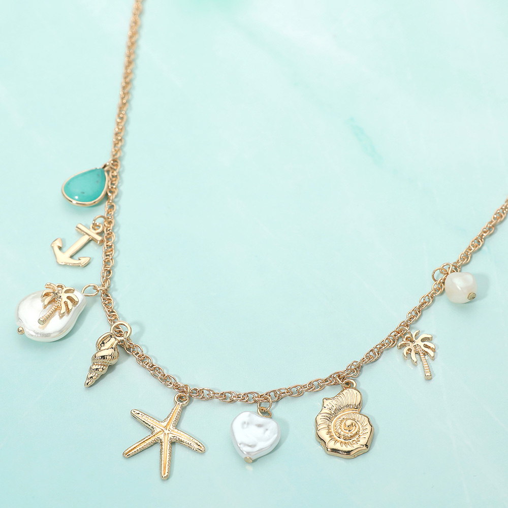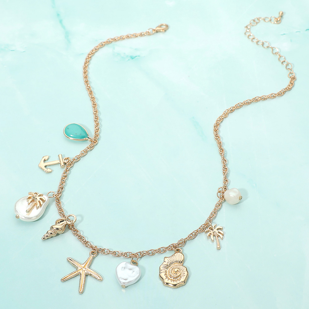 Details • Necklace Size : 16" + 3.25" L • Decor Size : 1" L • Charming pendant necklace featuring a collection of coastal-inspired motifs arranged along a delicate chain for playful, layered style. Designed to add personality and movement, this necklace enhances everyday outfits, vacation looks, and casual styling while offering standout appeal for boutique accessory collections. • Lead and Nickel Compliant