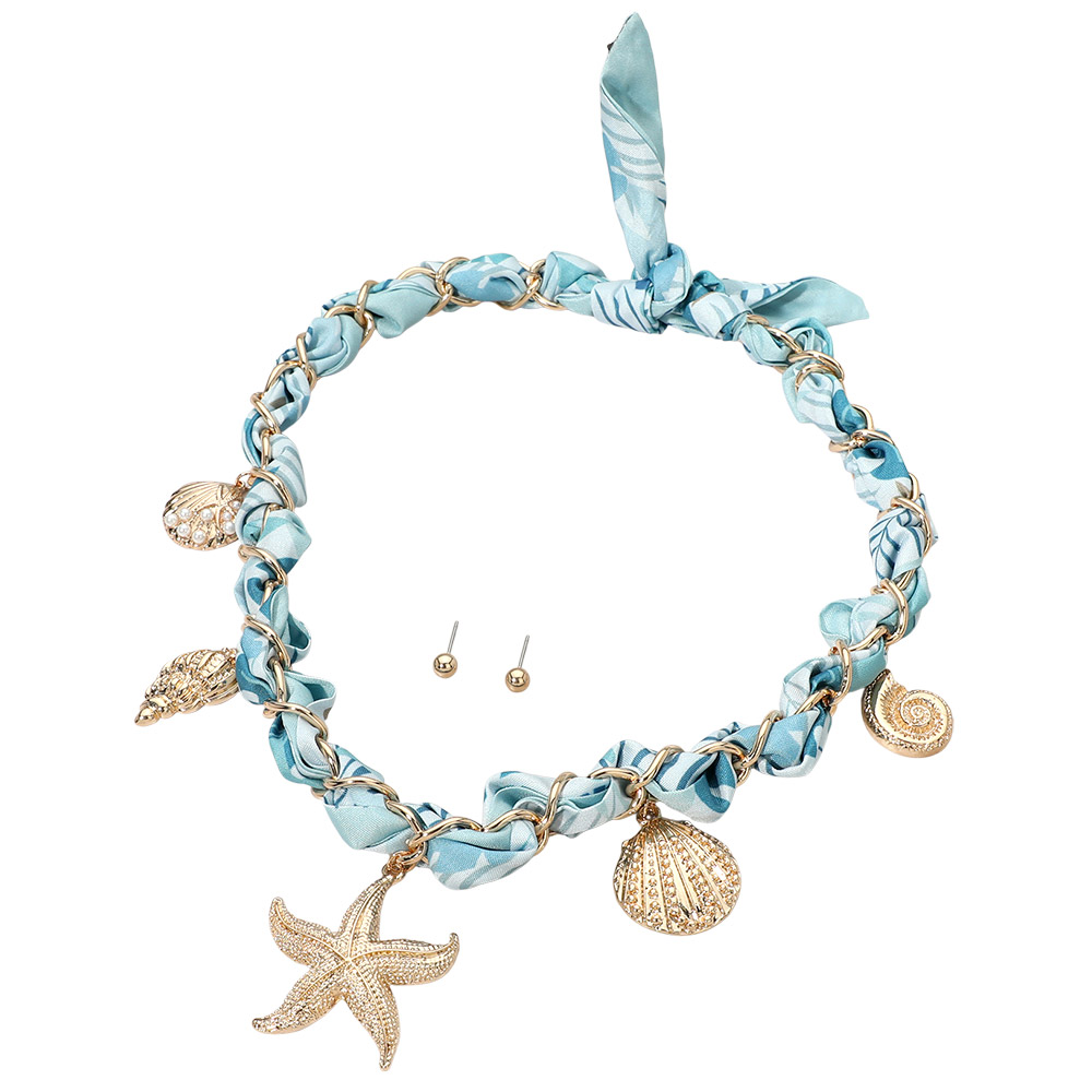 Starfish Shell Charm Fabric Scarf Necklace Starfish Shell Charm Fabric Scarf Necklace Starfish Shell Charm Fabric Scarf Necklace
