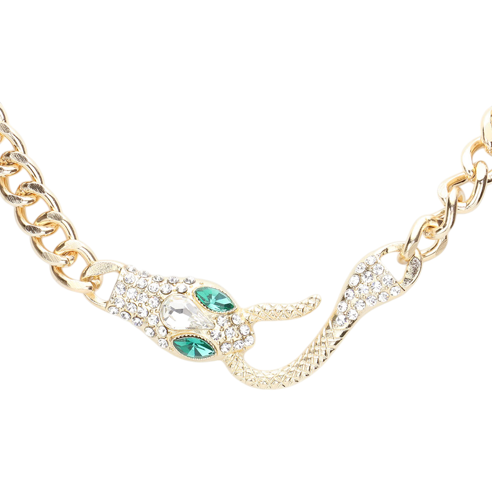 Rhinestone Paved Bold Alligator Accent Statement Necklace