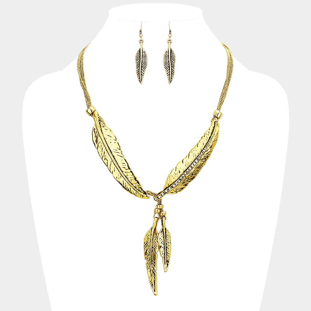 Teardrop Pearl Accented Leaf Cluster Necklace