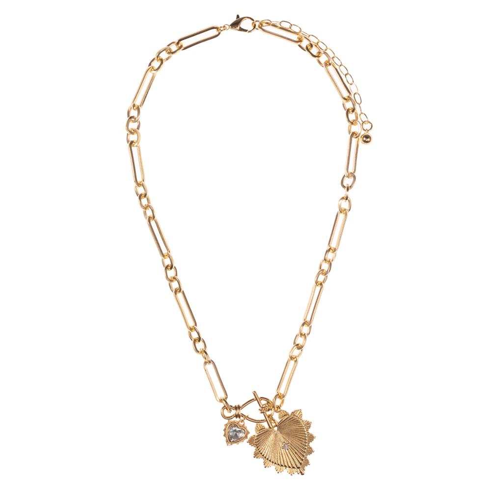 Sunburst Heart with Frozen Toggle Pendant Abstract Chain Necklace