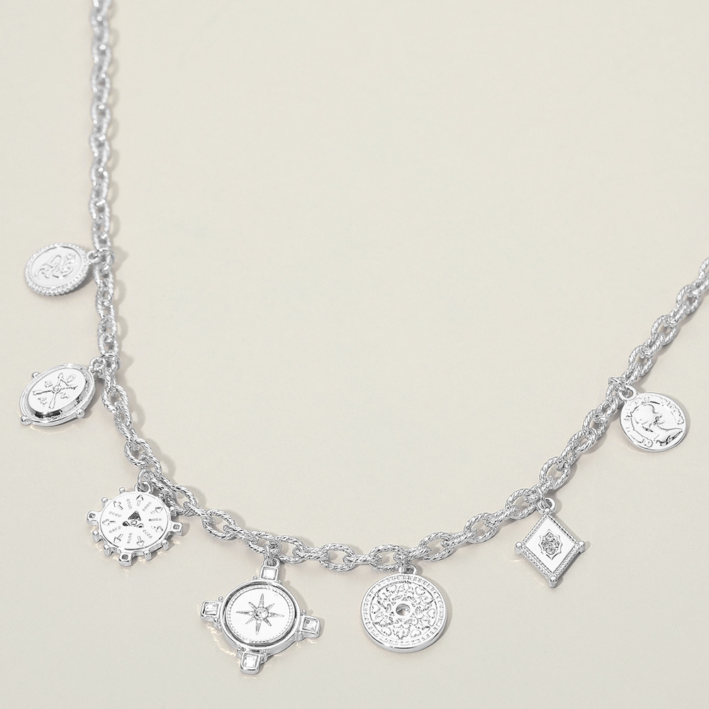 Symbolic Coin Charm Station Necklace Symbolic Coin Charm Station Necklace Symbolic Coin Charm Station Necklace