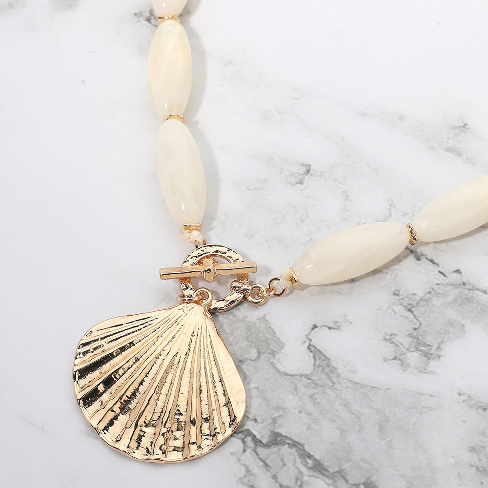 Details • Necklace Size : 23.5" + 4" L • Decor Size : 2.6" L • Elevate your style with this coastal-inspired necklace featuring a beautiful shell pendant. Its unique design combines elegance and relaxed charm, making it the perfect accessory for a variety of outfits. Ideal for adding a touch of sophistication with a natural flair. • Lead and Nickel Compliant
