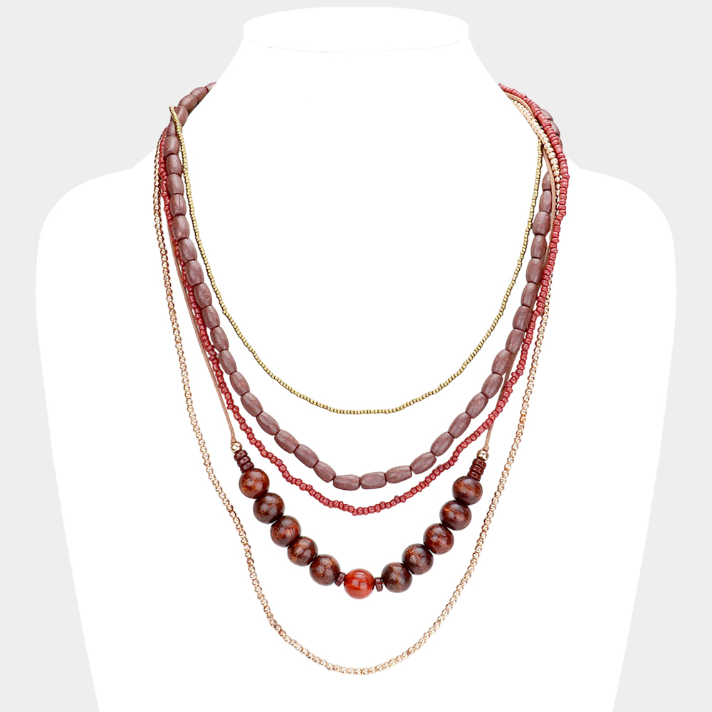 Wood Multi Layered Bib Necklace