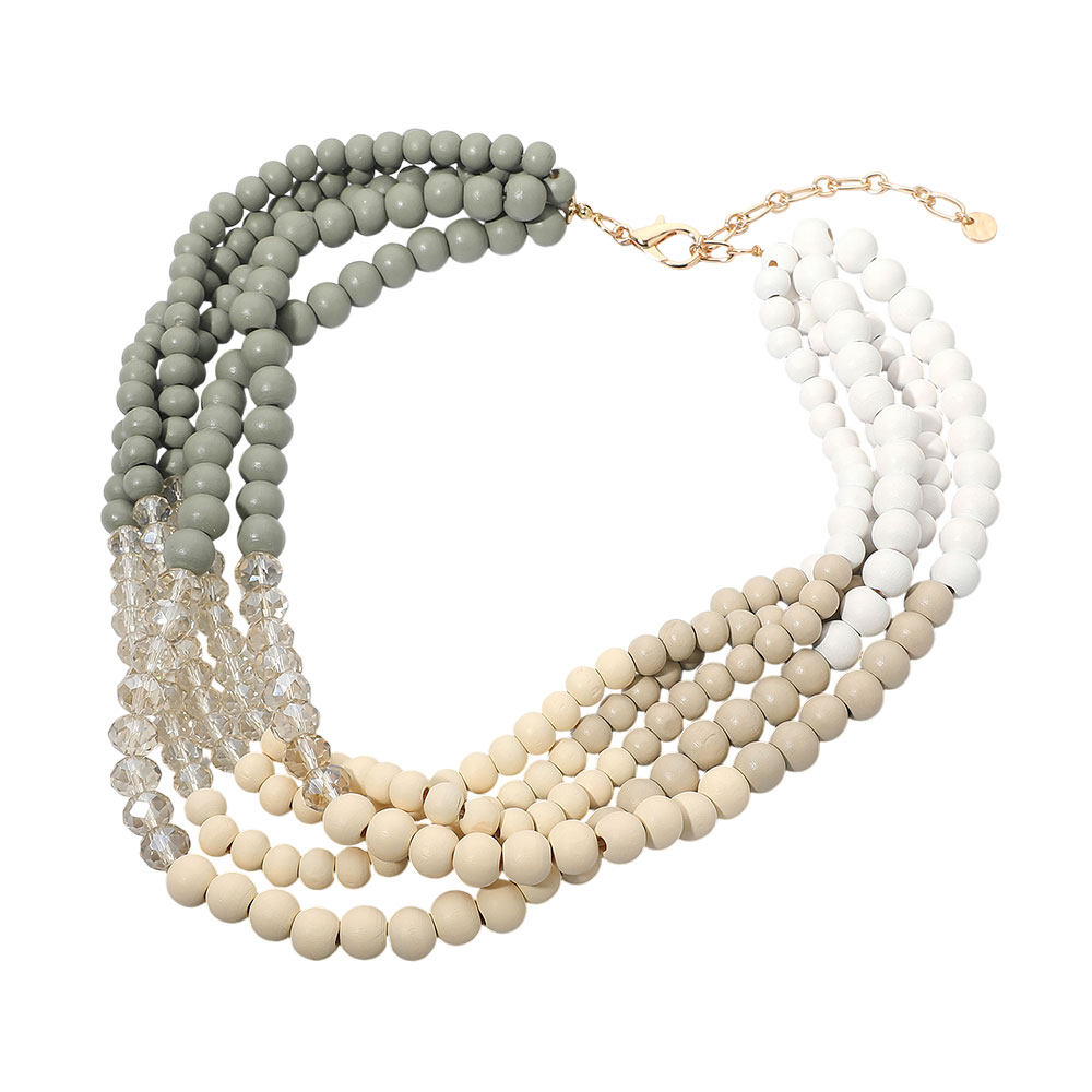 Wooden Ball Beaded Multi Layered Statement Necklace
