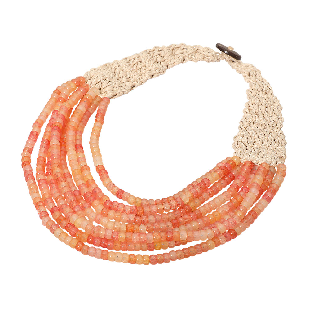 Woven Detail Multi Strand Beaded Collar Statement Necklace
