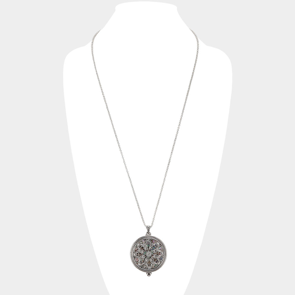 Antique Patterned Magnifying Glass Locket Pendant Long Necklace