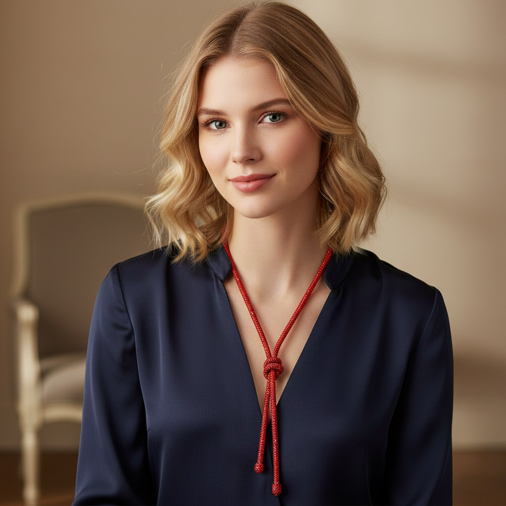 Details • Necklace Size : 40" L • This elegant bling studded lariat chain necklace features a sleek knotted design that drapes beautifully for a modern, sophisticated look. Perfect for both casual and formal settings, its adjustable length and minimalist charm make it a versatile addition to any jewelry collection. • Lead and Nickel Compliant • Made In Korea
