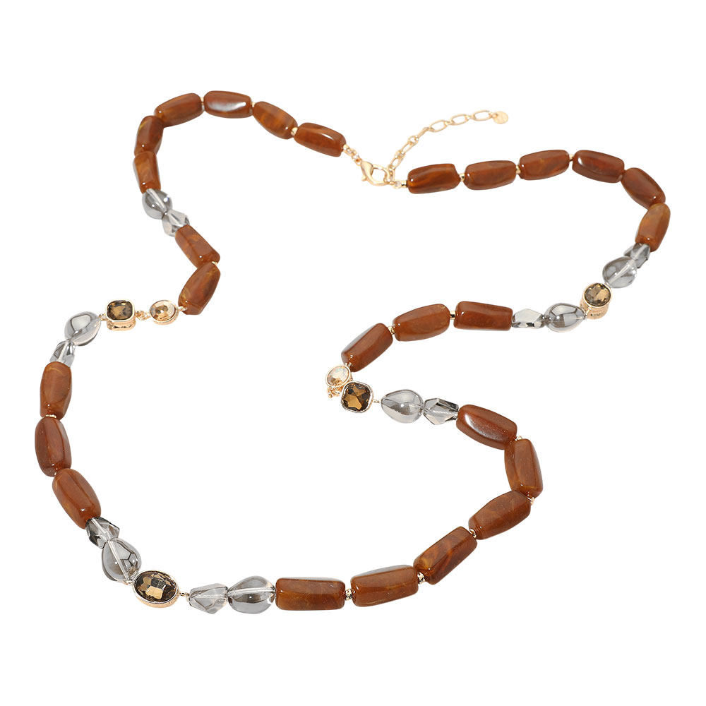 Details • Necklace Size : 42.5" + 4" L • Decor Size : 0.5" L • This long beaded statement necklace features a balanced mix of elongated beads and decorative accents for a refined, eye-catching look. Designed to elevate both casual and polished outfits, it adds texture, movement, and visual interest, making it a versatile choice for boutique and fashion-forward jewelry assortments. • Lead and Nickel Compliant