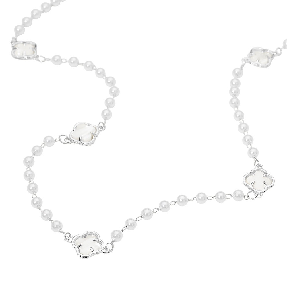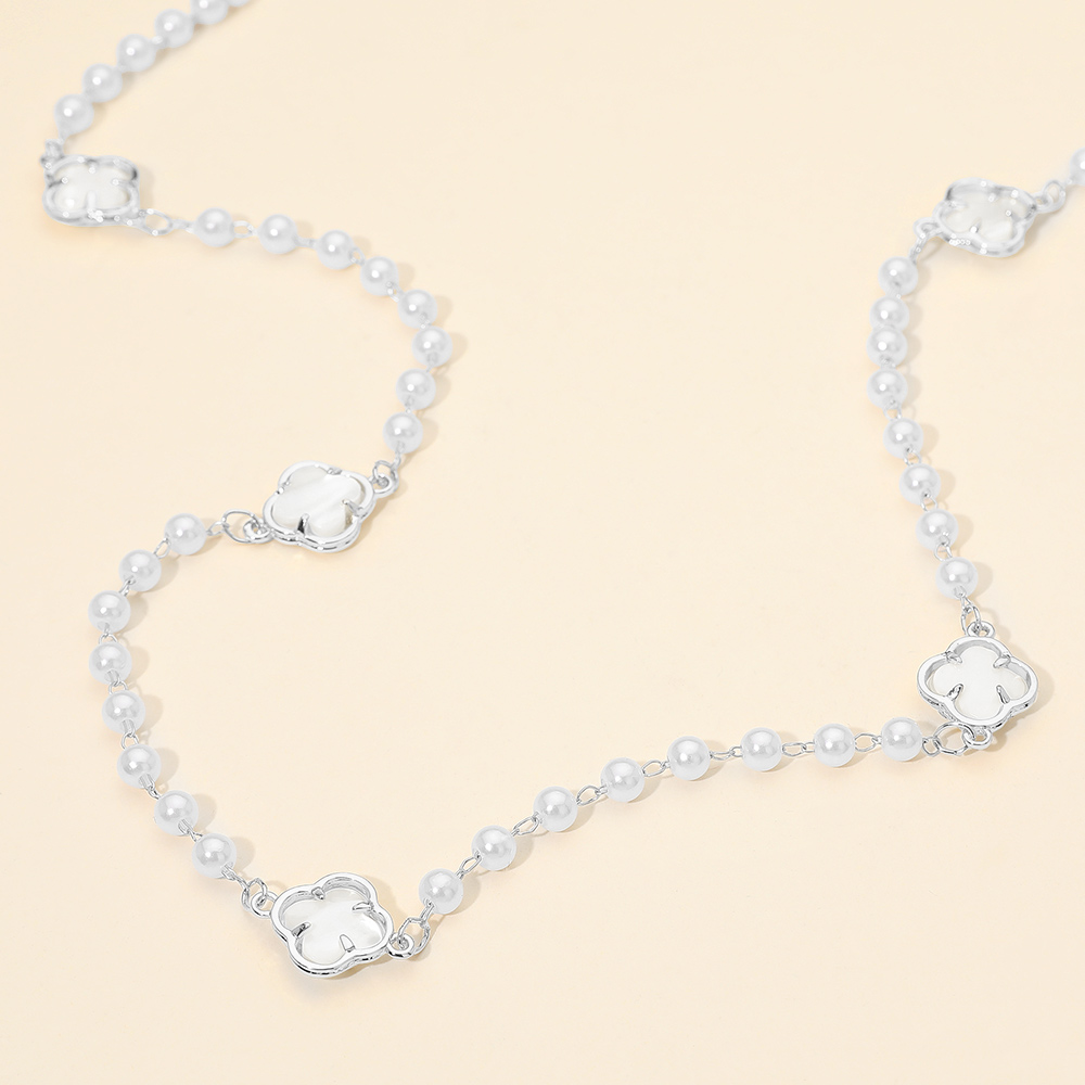 Clear Quatrefoil Cluster Station Pearl Long Necklace Clear Quatrefoil Cluster Station Pearl Long Necklace Clear Quatrefoil Cluster Station Pearl Long Necklace