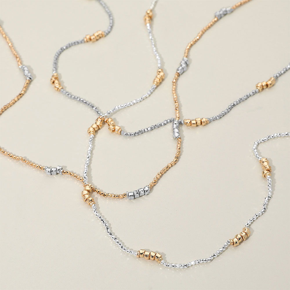 • Elevate any outfit with this delicate two-tone beaded chain necklace. Featuring a sleek design with polished bead accents, it adds a refined touch to both casual and formal ensembles. Lightweight and versatile, this necklace brings effortless elegance to everyday style.