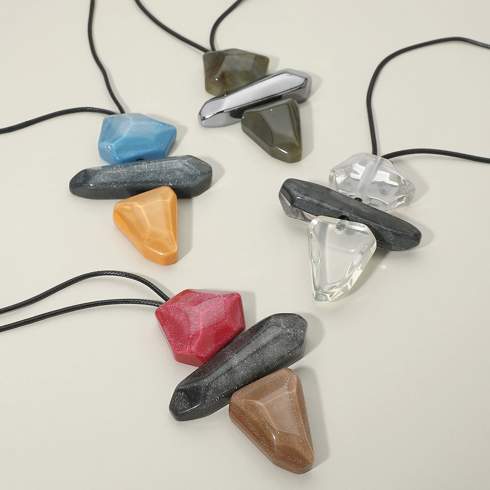 Geometric Stackable Resin Pendant Adjustable Long Necklace