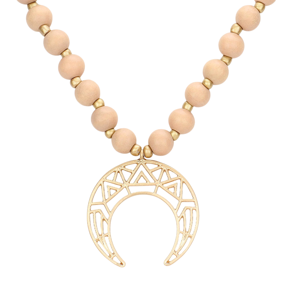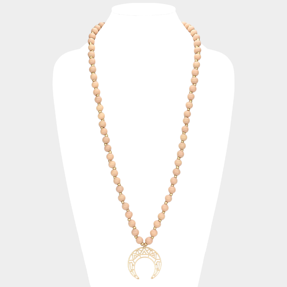 Metal Cutout Double Horn Pendant Wood Long Necklace