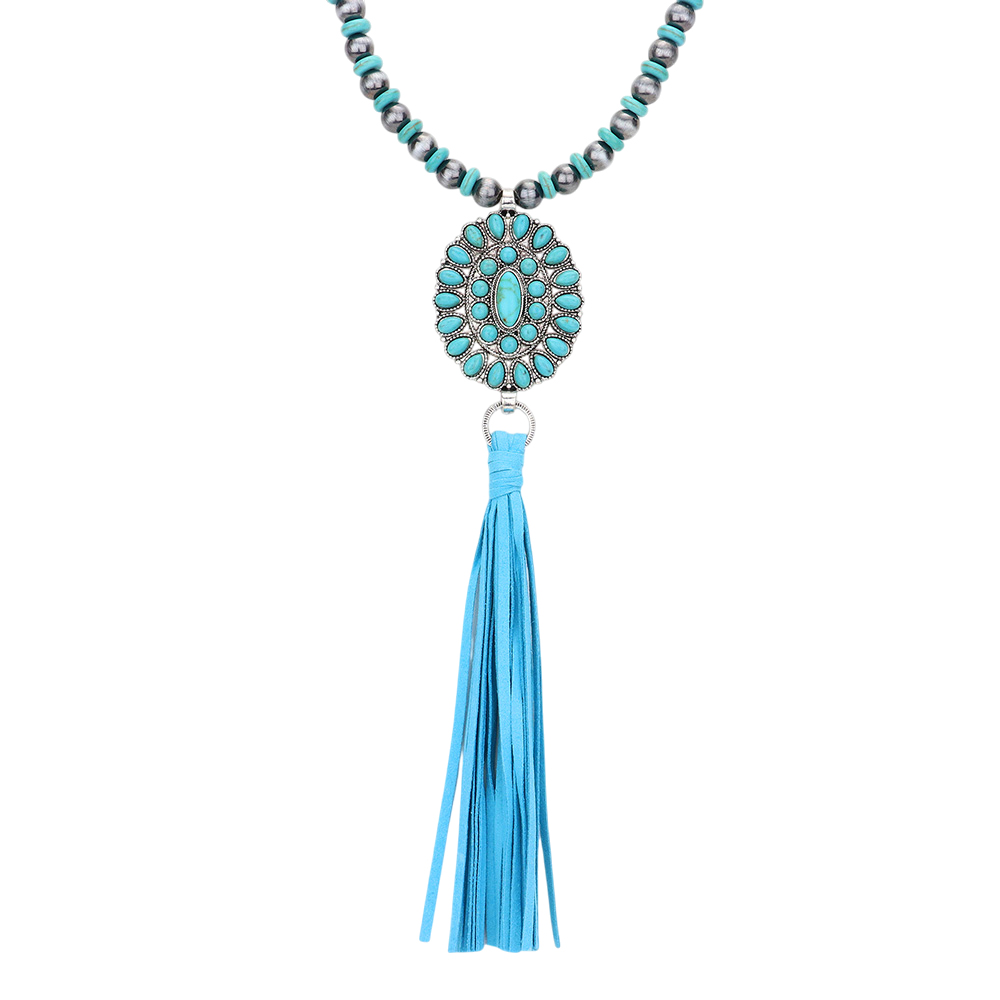 Natural Stone Squash Blossom Suede Tassel Long Necklace