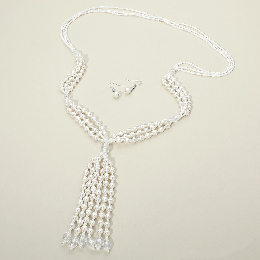 Pearl Beaded Tassel Long Necklace Pearl Beaded Tassel Long Necklace