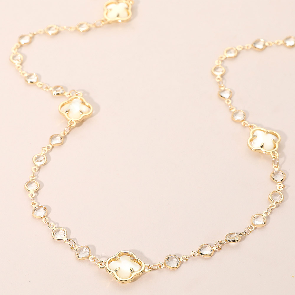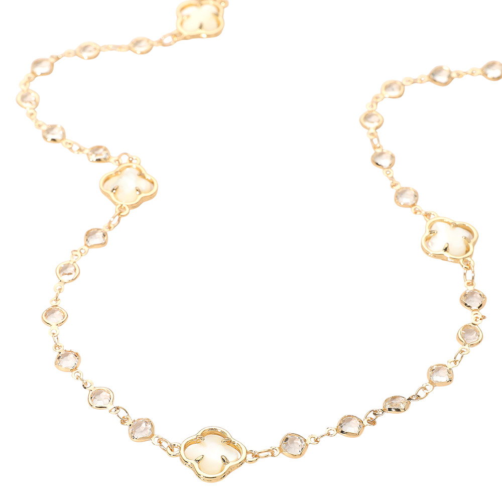 • Add a touch of elegance with this quatrefoil station necklace featuring delicate gemstone accents and refined detailing. Perfect for layering or wearing solo, this versatile piece brings timeless sophistication and charm to both everyday looks and special occasions.