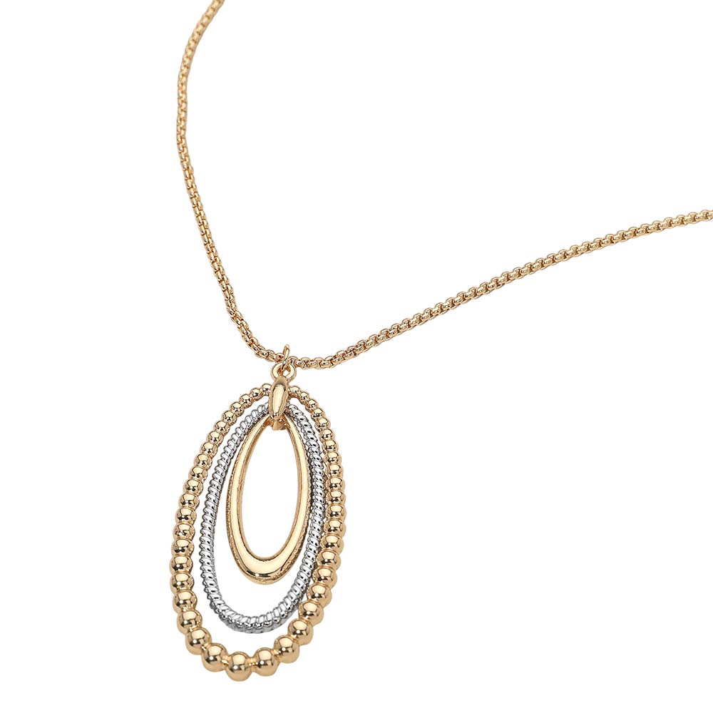 Details • Necklace Size : 34.25" + 3.25" L • Pendant Size : 1.1" X 2.4" • Layered pendant necklace featuring a refined oval drop design with delicate chain detailing. A versatile accessory that elevates everyday outfits, office wear, or evening looks with effortless style. Ideal for solo wear or layering, it adds a polished finishing touch to modern and classic wardrobes. • Lead and Nickel Compliant