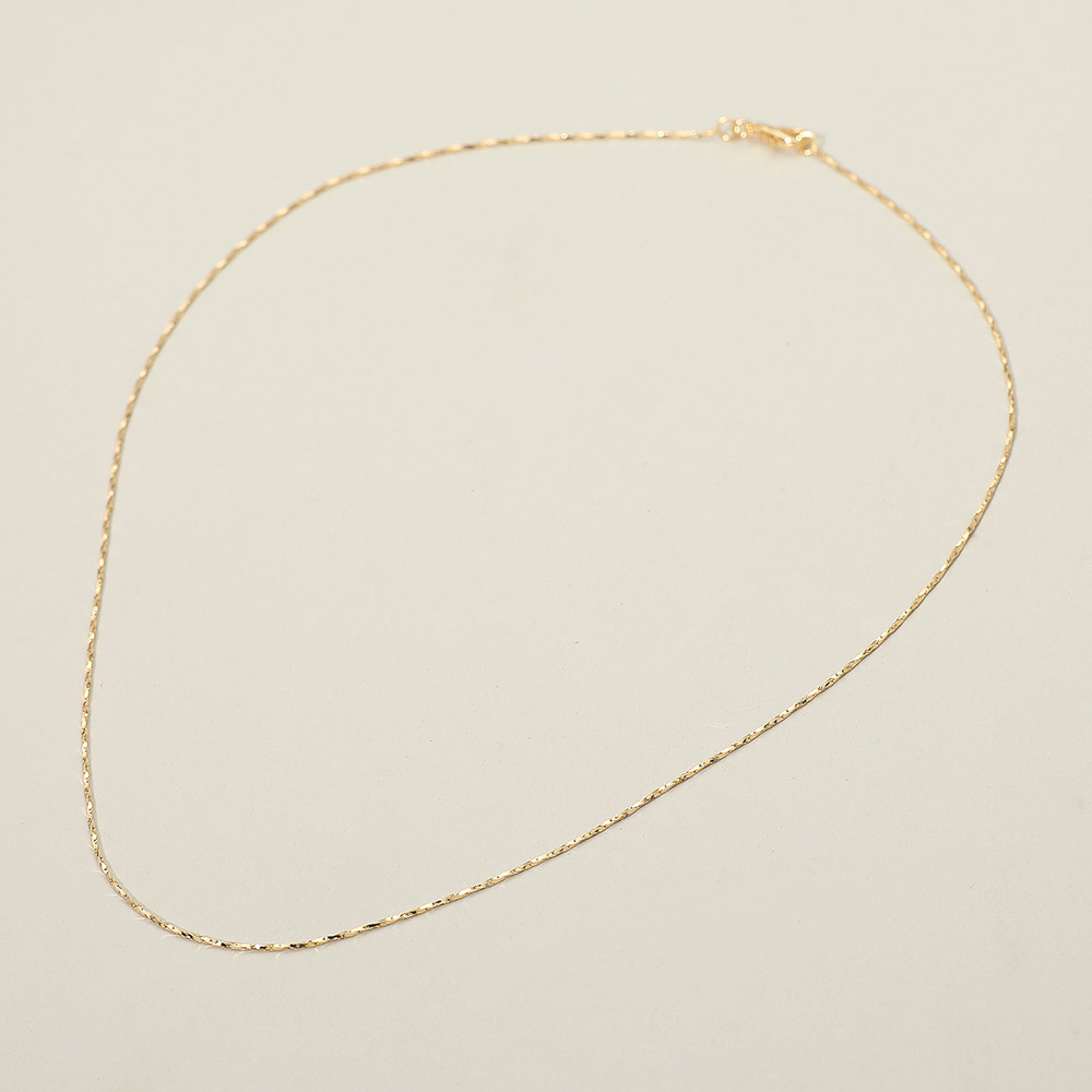 Details • Necklace Size : 18" L • Decor Size : 0.1" L (1mm) • Delicate twist chain necklace featuring a finely textured design that catches the light with every movement. Perfect for layering or wearing solo, this elegant piece adds a refined shimmer to casual and dressy looks alike. • Gold Filled • Lead and Nickel Compliant • Made In Brazil