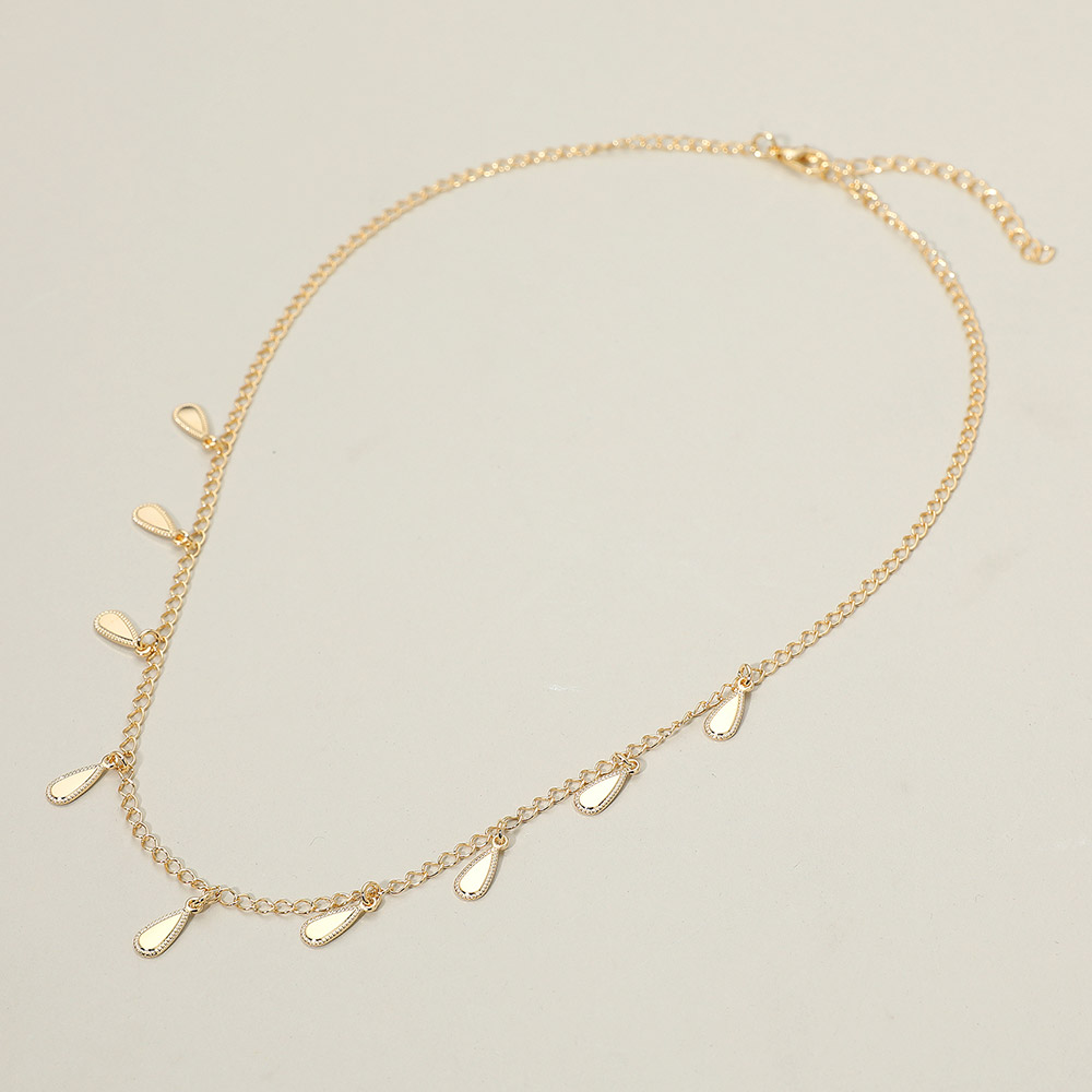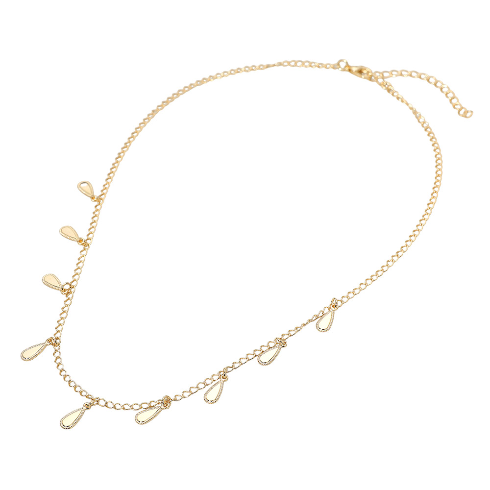 Details • Necklace Size : 16" + 2" L • Decor Size : 0.5" L • Stylish chain necklace adorned with small teardrop dangles for a delicate, feminine touch. The dangling accents move gracefully with every turn, adding elegant shimmer and fluidity to your neckline — perfect for layering or wearing as a refined statement piece. • Gold Filled • Lead and Nickel Compliant • Made In Brazil