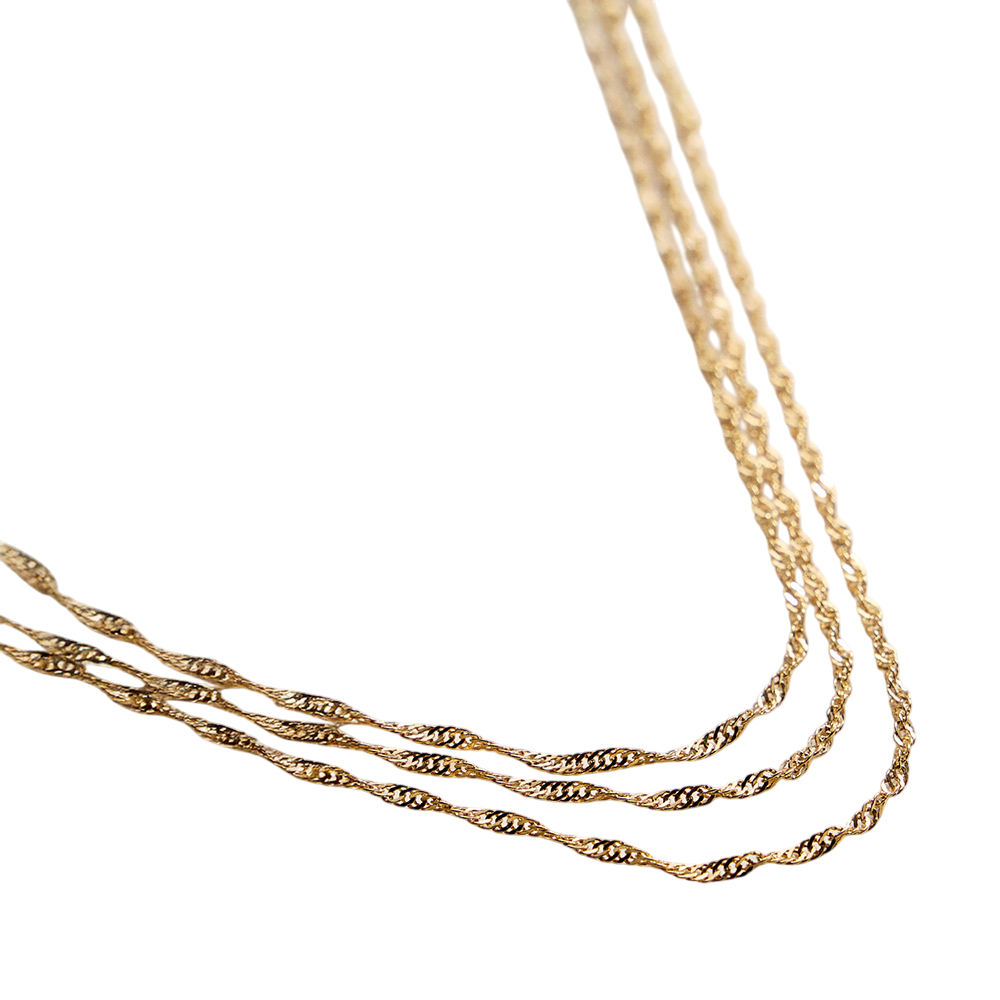 Details • Necklace Size : 17.5" + 1.5" L • Decor Size : 1" L • Elegant twisted chain necklace designed with a slim, lightweight silhouette for effortless daily wear. Ideal for layering with other necklaces or wearing alone for subtle shine. A versatile accessory that complements casual outfits, work looks, and minimalist jewelry styling. • Gold Filled • Hypoallergenic • Lead and Nickel Compliant • Made In Brazil