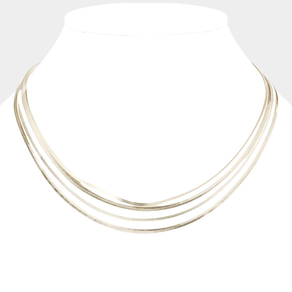 Pearl Metal Ball Chain Triple Layered Bib Necklace