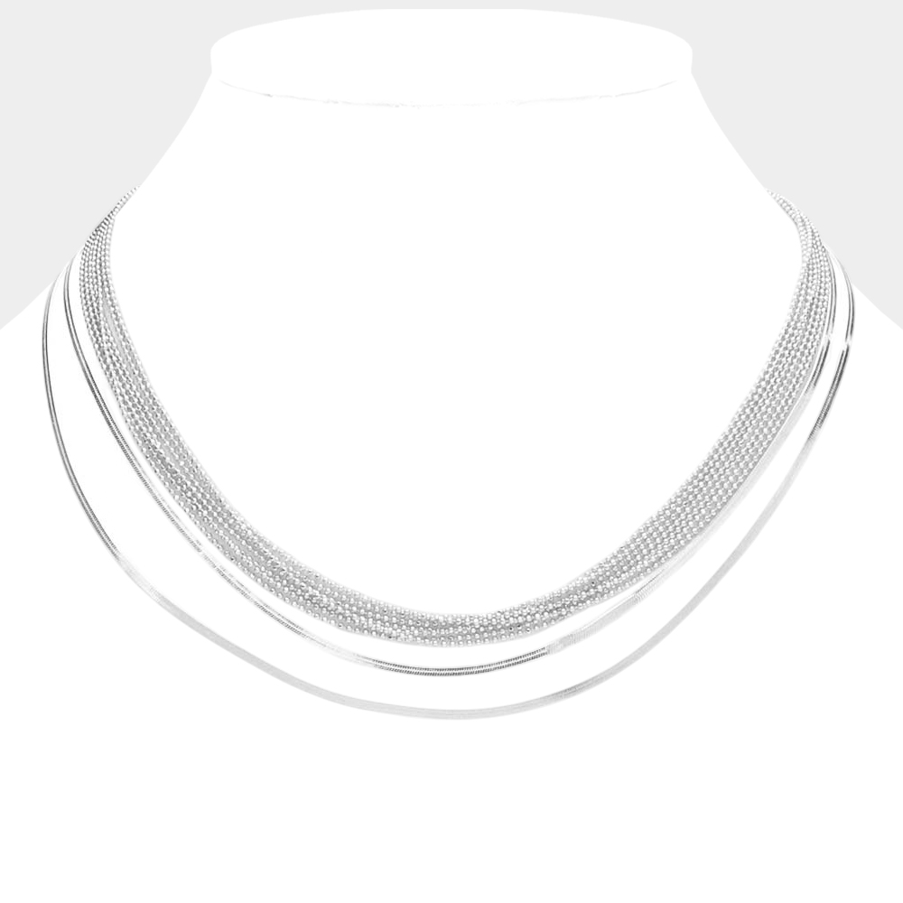 White Gold Dipped Metal Chain Double Layered Necklace