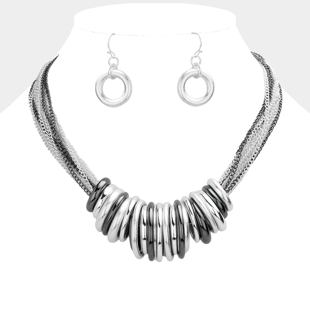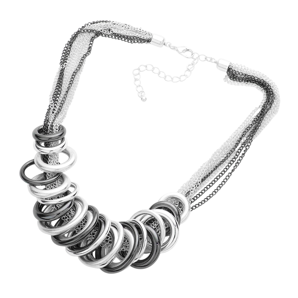 Textured Metal Heart Carabiner Pendant Colorful Chunky Beaded Statement Necklace
