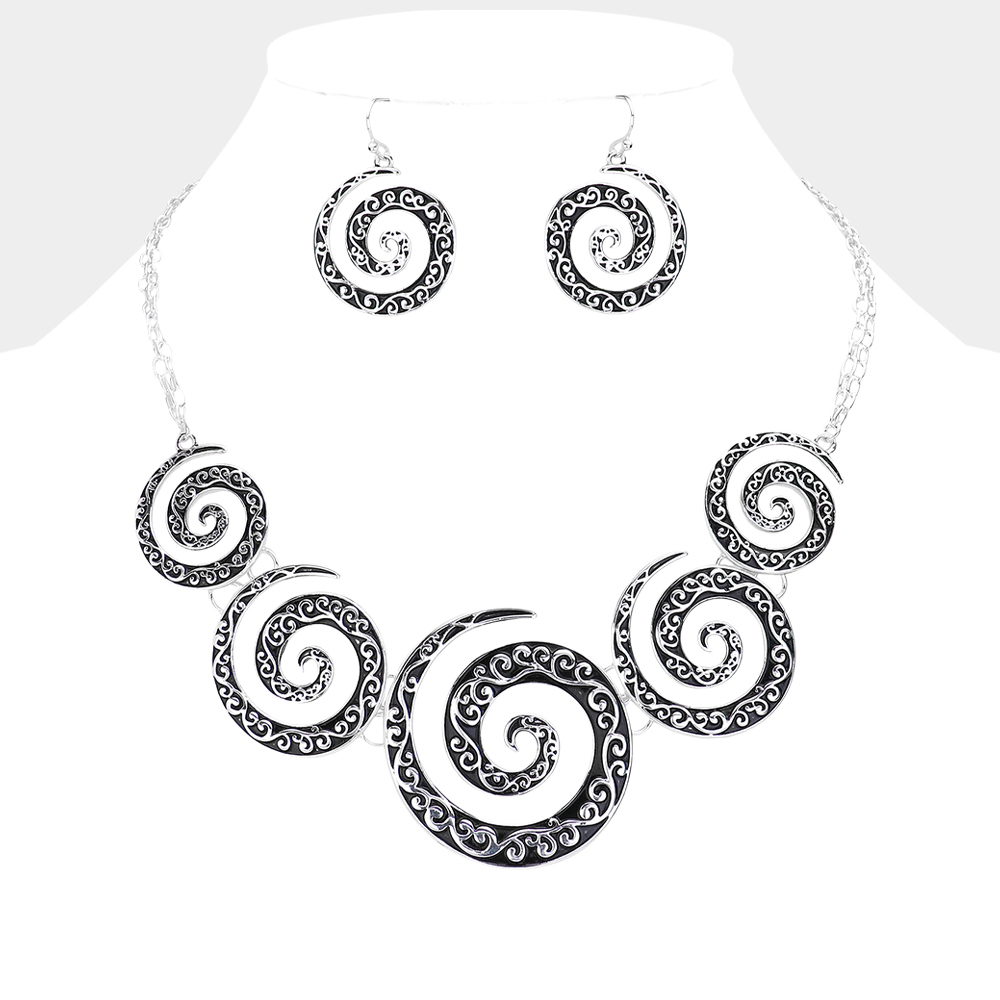 Boho Antique Metal Spiral Necklace