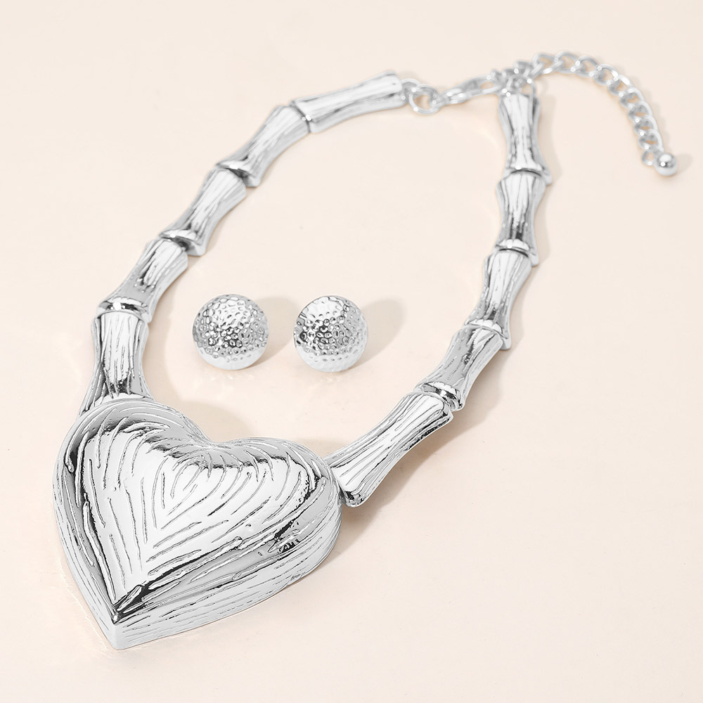 • This statement jewelry set features a sculpted heart pendant necklace with a bold, artistic chain and matching textured stud earrings. Perfect for adding elegance and flair, it blends romantic design with modern sophistication, making it ideal for standout occasions.