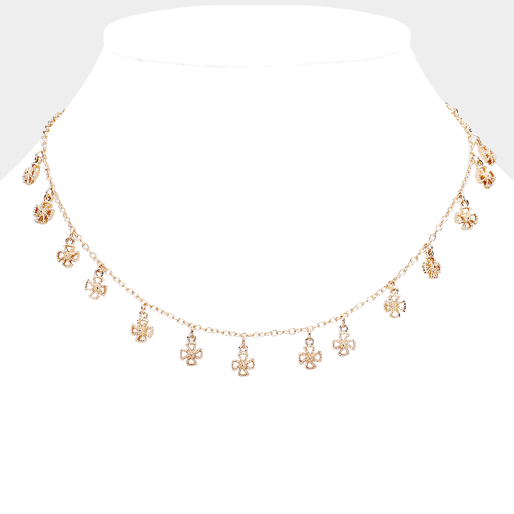 Stone Paved Cross Pendant Beads Double Layered Necklace