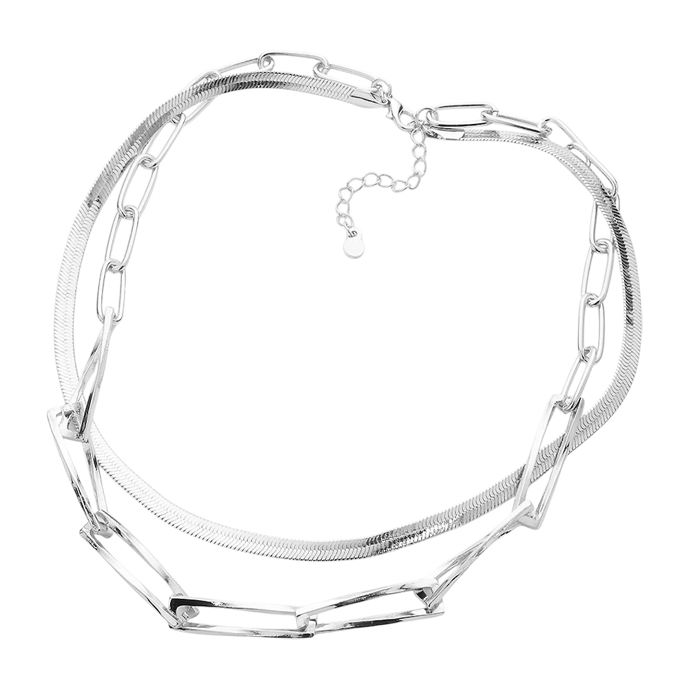 Double Layered Twisted Open Metal Rectangle Link Necklace