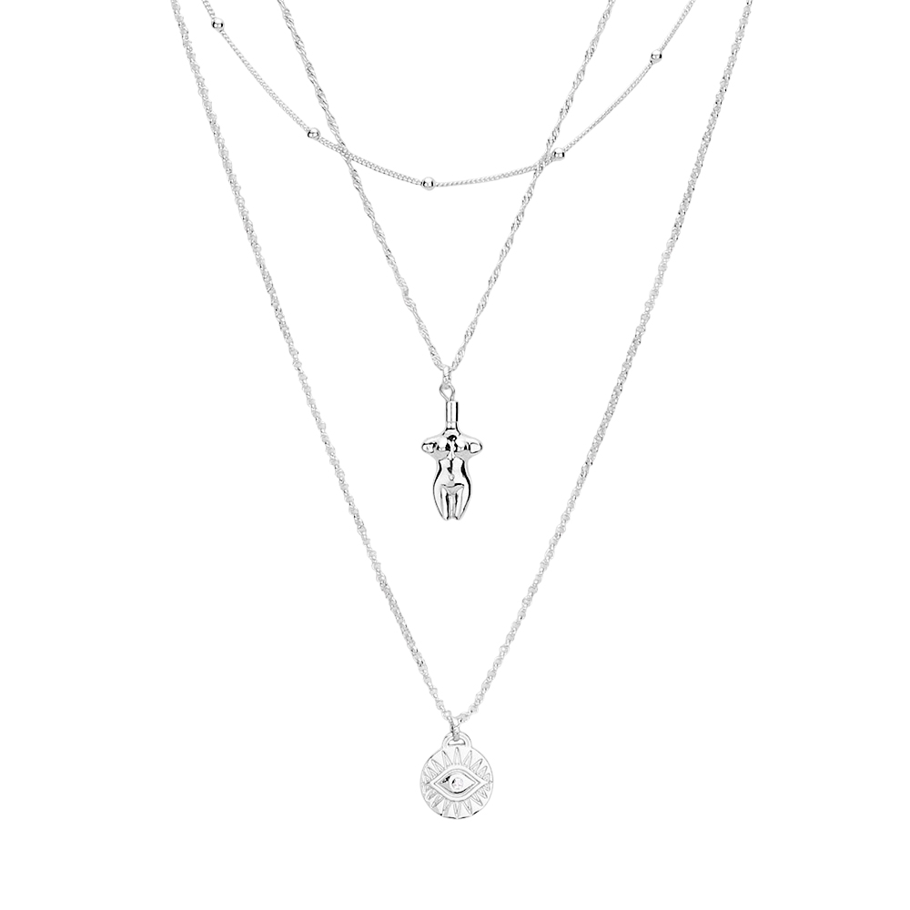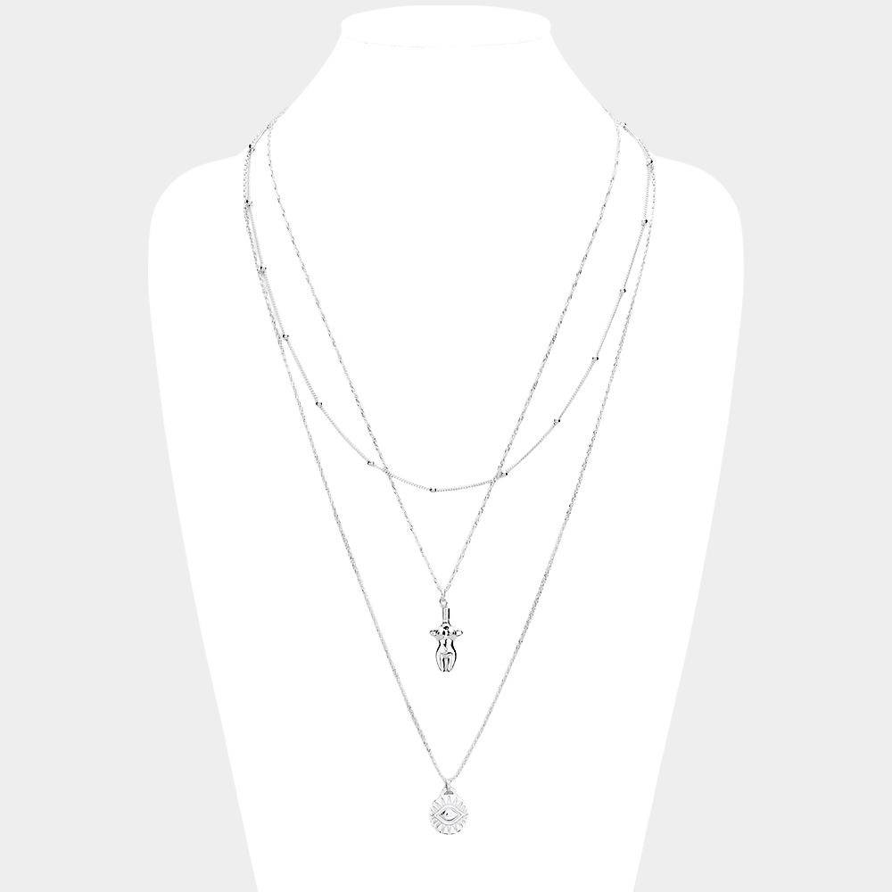 Evil Eye Heart Rose Lips Key Lock Charm Necklace