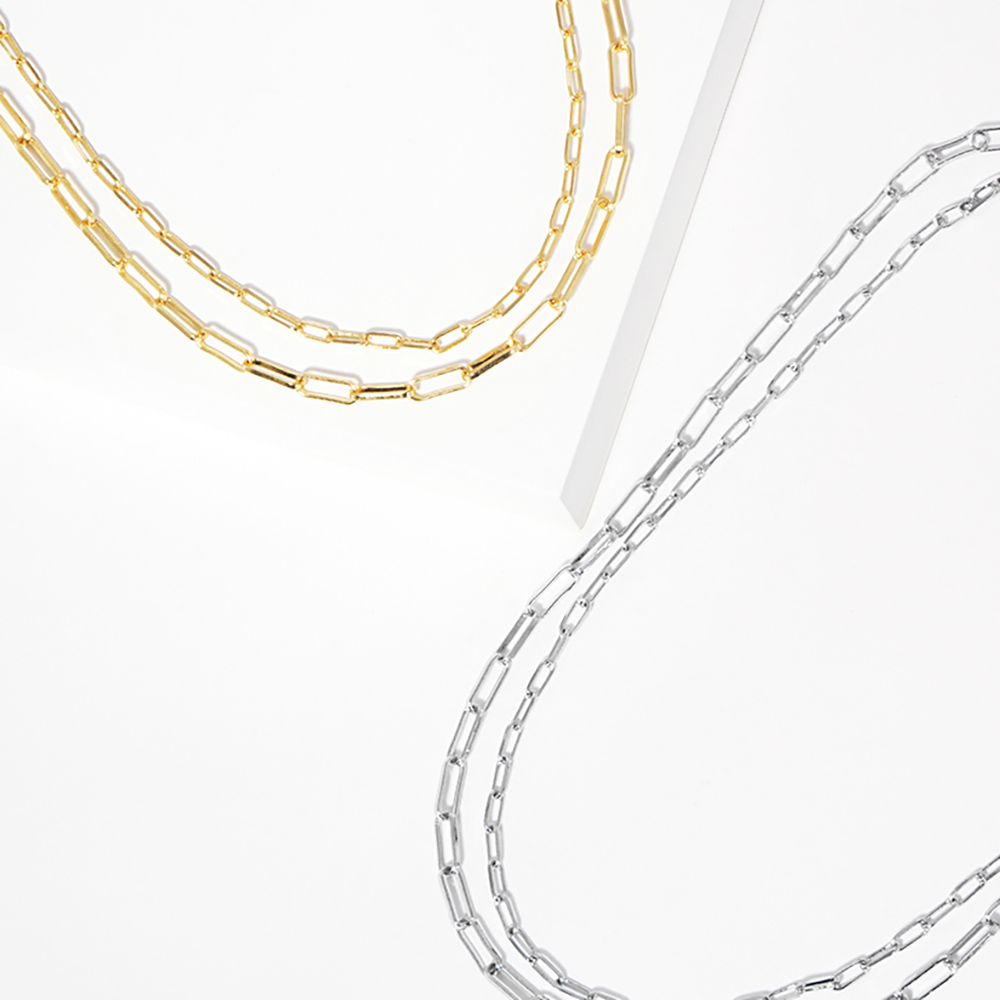 White Gold Dipped Double Layered Paperclip Chain Necklace