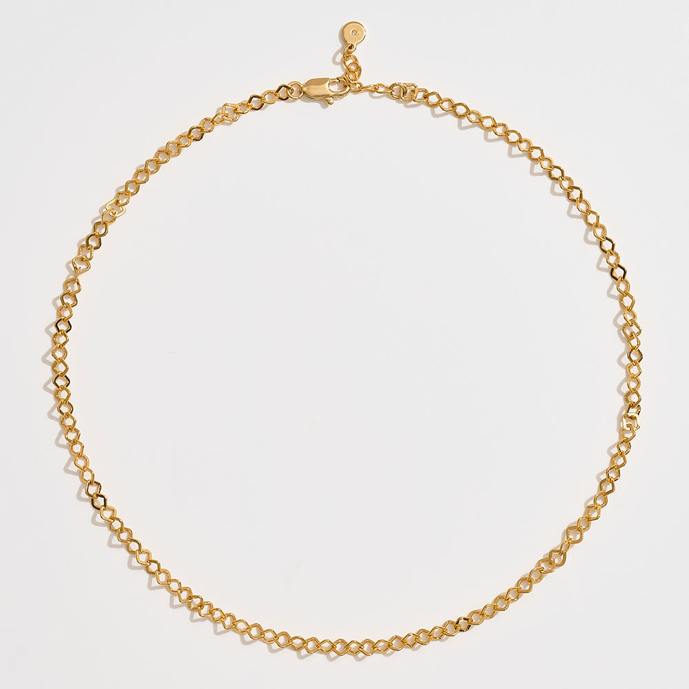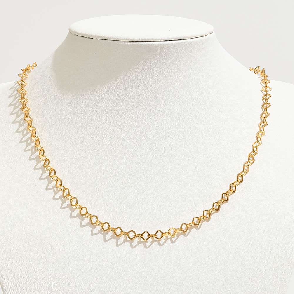 Details • Necklace Size : 18" + 1" L • Decor Size : 0.2" L • Elevate your everyday look with this geometric link chain necklace crafted in brass. Its minimalist pattern and lightweight design make it perfect for layering or wearing solo. A versatile accessory that transitions seamlessly from casual wear to elegant occasions with modern charm. • Brass • Gold Dipped • Hypoallergenic • Made In Korea