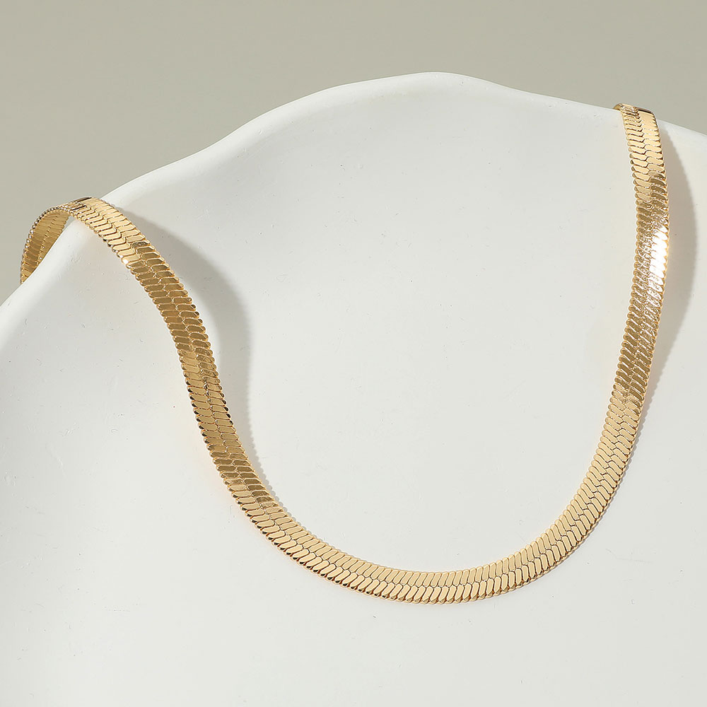 • Discover effortless sophistication with this herringbone chain necklace, crafted with smooth, flat links that reflect light beautifully. Its sleek and modern design makes it the perfect versatile accessory, ideal for layering or wearing alone to elevate any outfit.