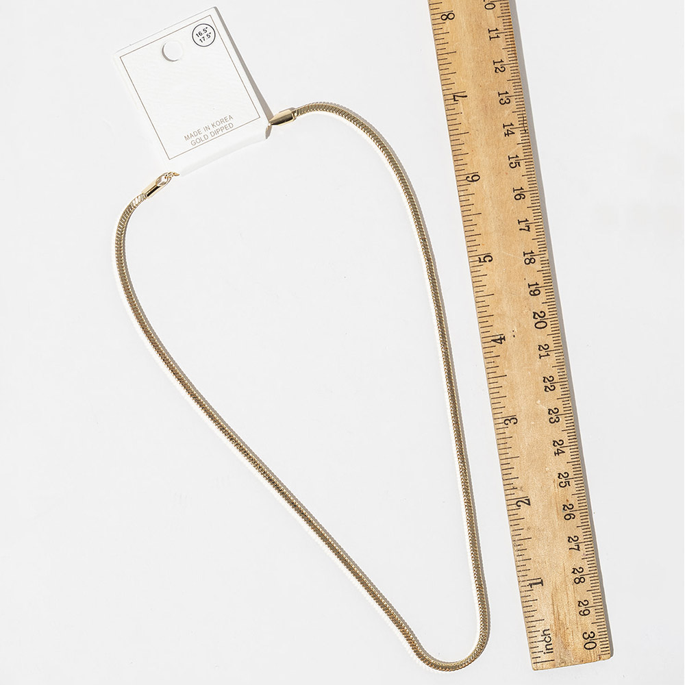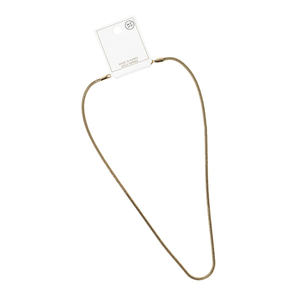 Details • Necklace Size : 16.5" + 1" L • Decor Size : 0.15" • This classic slim chain necklace offers a clean, modern look designed for everyday wear. Perfect for layering with pendants or styling on its own, it delivers effortless versatility that transitions seamlessly from casual outfits to polished, elevated looks. • Gold Dipped • Lead and Nickel Compliant • Made In Korea