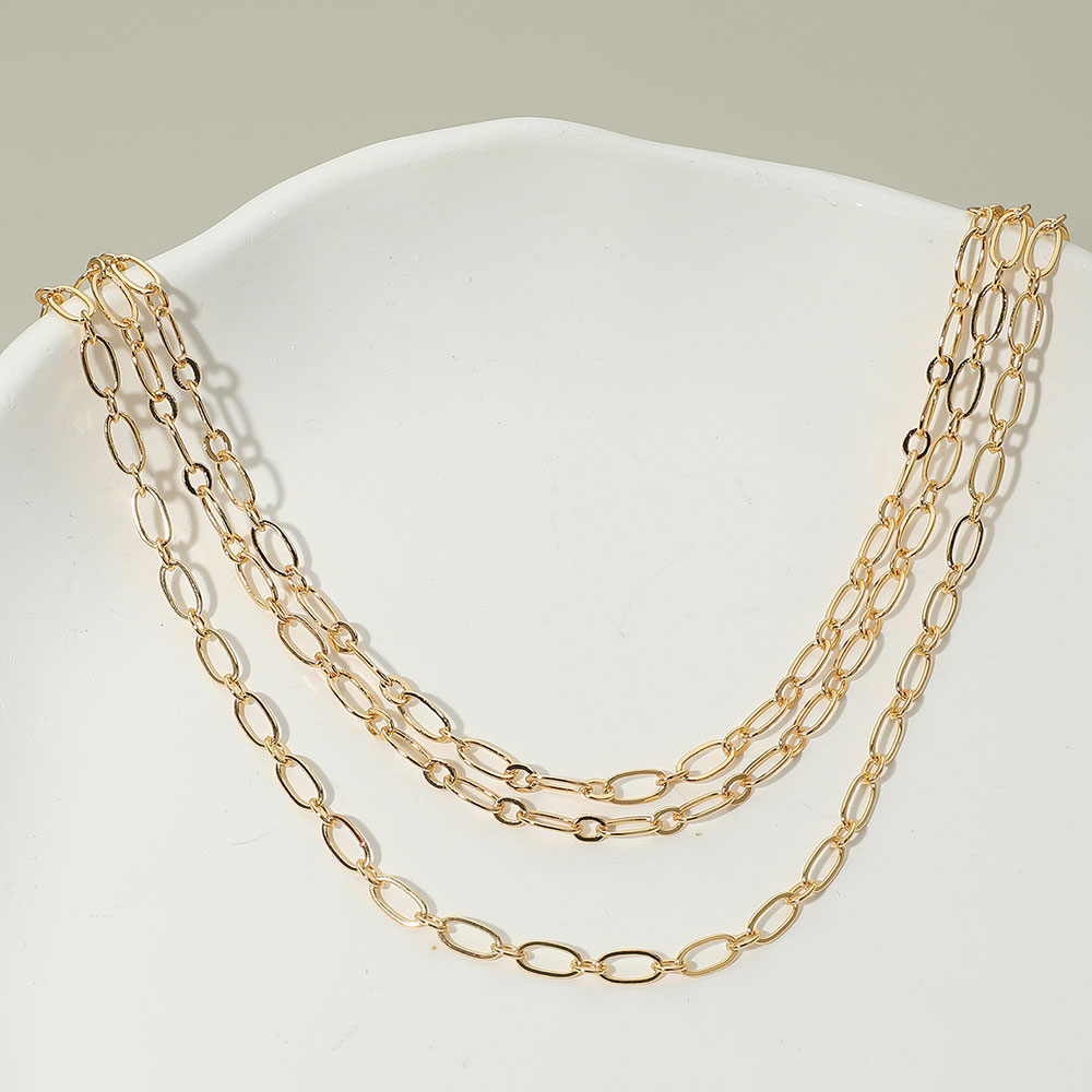Gold Dipped Triple Layered Oval Link Chain Necklace