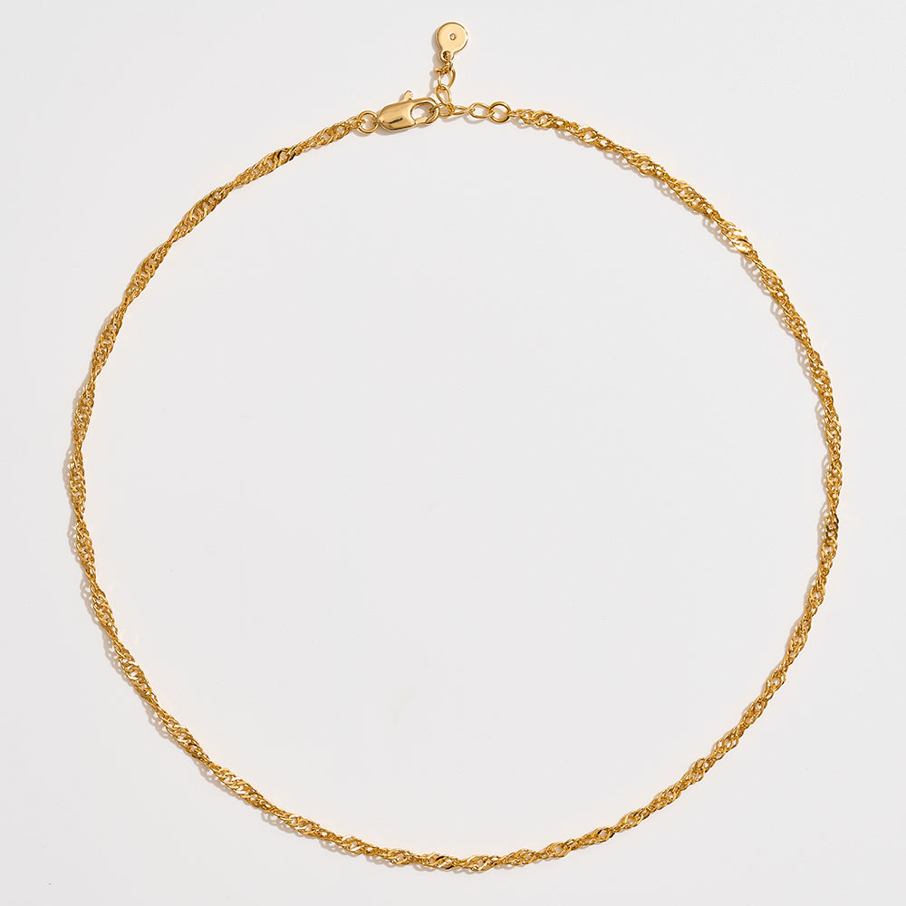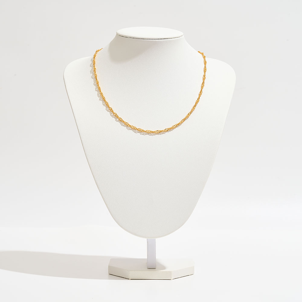 Details • Necklace Size : 18" + 1" L • Decor Size : 0.2" L • This twisted rope chain necklace combines elegance and versatility with its finely interwoven design crafted from durable brass. A perfect standalone accessory or layering piece, it enhances casual and formal outfits, making it an essential addition to any jewelry collection. • Brass • Gold Dipped • Made In Korea
