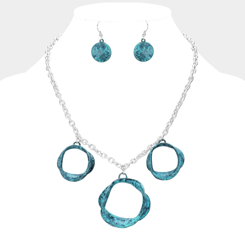 Hammered Bended Triple Open Circle Necklace