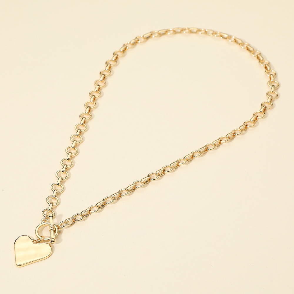 Hammered Metal Heart Pendant Chunky Chain Toggle Necklace
