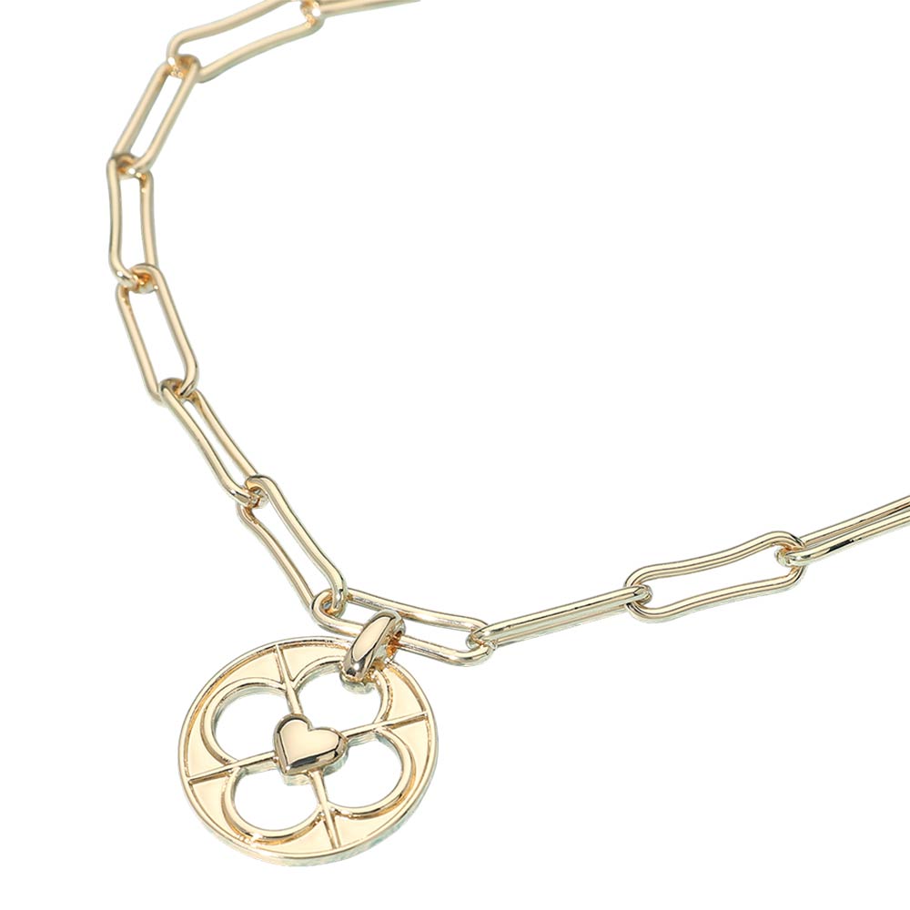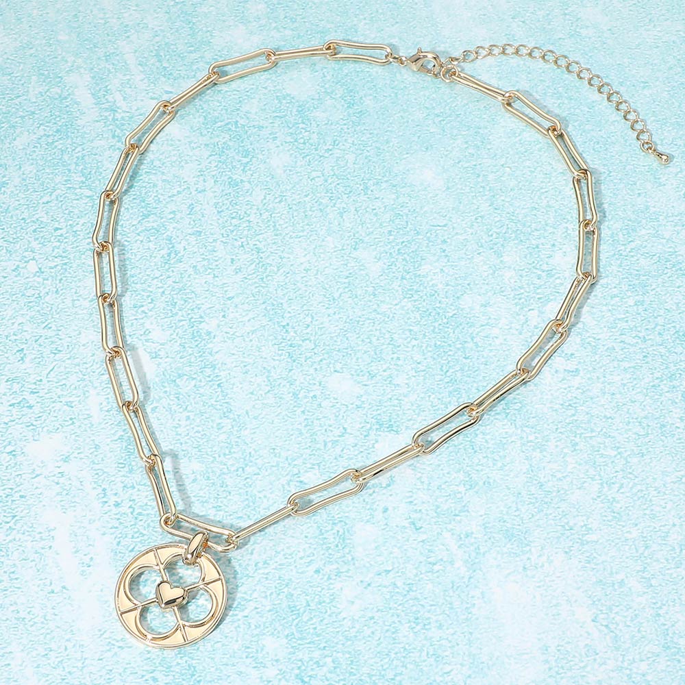 Heart Accent Clover Cutout Medallion Pendant Paperclip Chain Necklace Heart Accent Clover Cutout Medallion Pendant Paperclip Chain Necklace Heart Accent Clover Cutout Medallion Pendant Paperclip Chain Necklace
