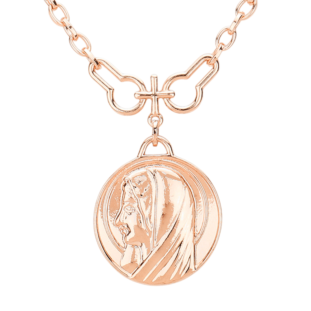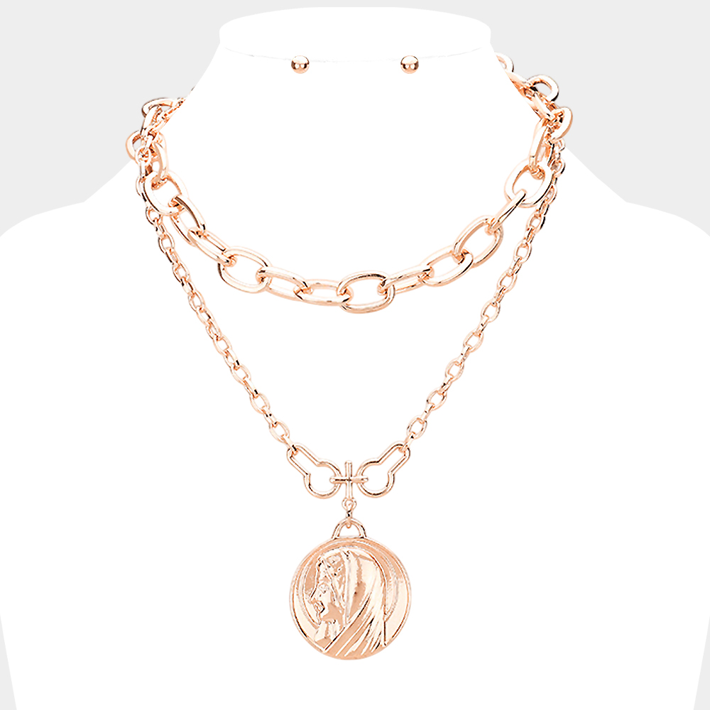 Faceted Beaded Metal Paperclip Chain Layered Cross Pendant Necklace