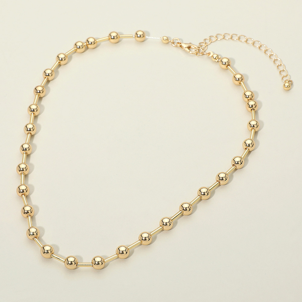Details • Necklace Size : 15" + 3" L • Decor Size : 0.2" L • Minimalist beaded ball chain necklace designed for effortless everyday styling and easy layering. Features evenly spaced rounded accents along a sleek chain for a clean, modern look that pairs well with pendants or stands alone. A versatile accessory ideal for casual outfits, workwear, and trend-focused jewelry collections. • Lead and Nickel Compliant