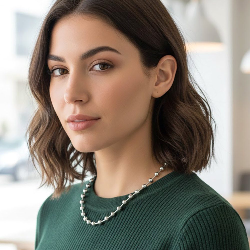 • Minimalist beaded ball chain necklace designed for effortless everyday styling and easy layering. Features evenly spaced rounded accents along a sleek chain for a clean, modern look that pairs well with pendants or stands alone. A versatile accessory ideal for casual outfits, workwear, and trend-focused jewelry collections.